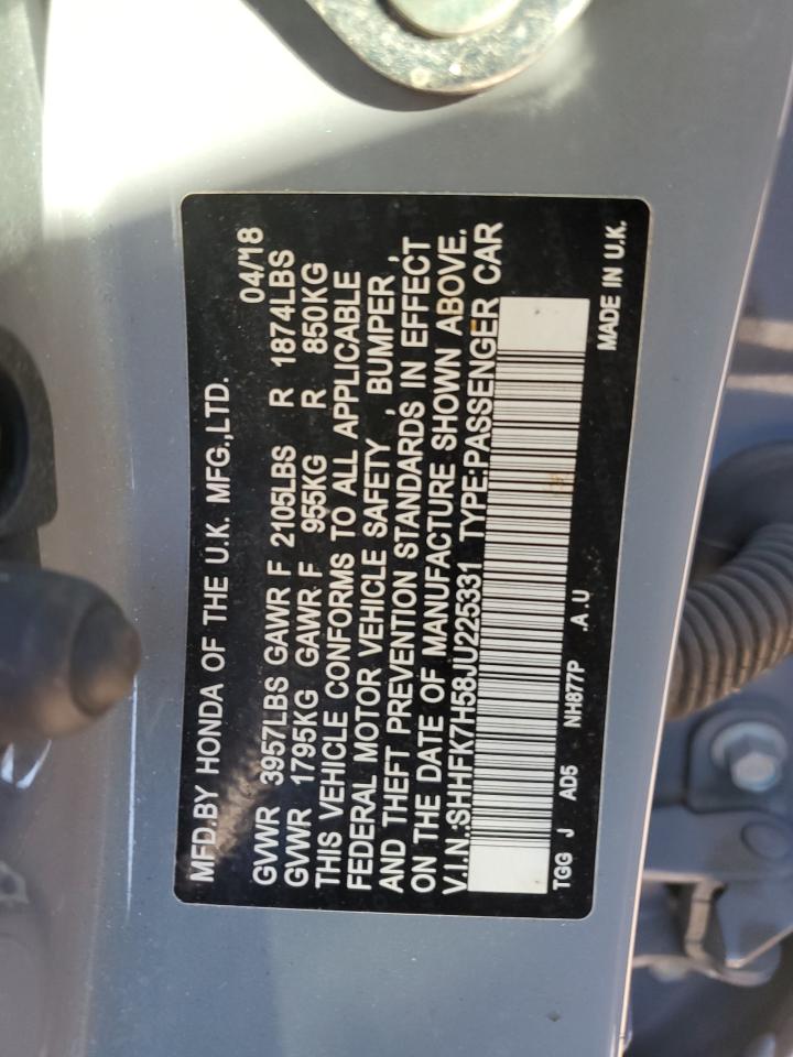 HONDA CIVIC 1.5 2018 г.в., (SHHFK7H58JU225331) из США