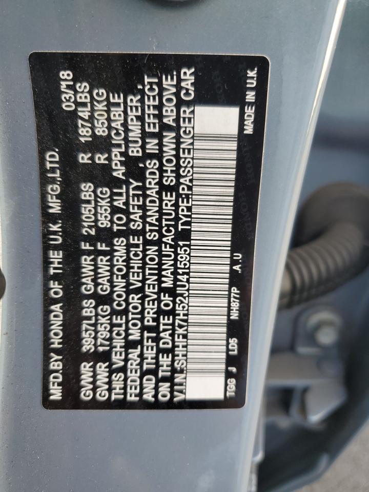 HONDA CIVIC 1.5 2018 г.в., (SHHFK7H52JU415951) из США