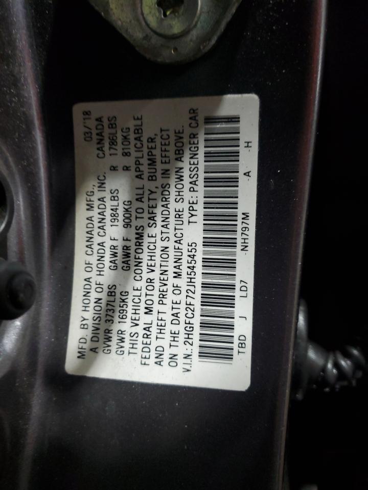 HONDA CIVIC 2.0 2018 г.в., (2HGFC2F72JH545455) из США