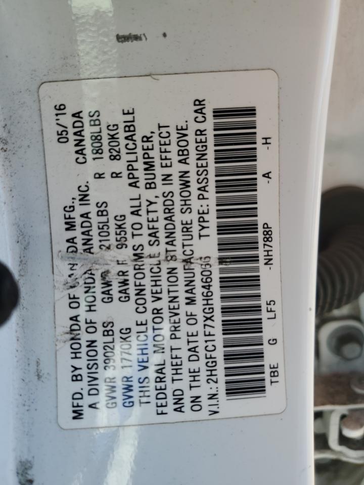 Цвет БелыйЦилиндры 4VIN 2HGFC1F7XGH646066Состояние ЗаводитсяПовреждение Передняя или задняя