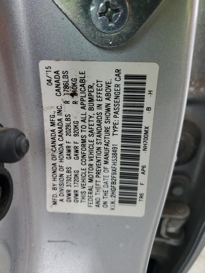 HONDA CIVIC 1.8 2015 г.в., (2HGFB2F9XFH538491) из США