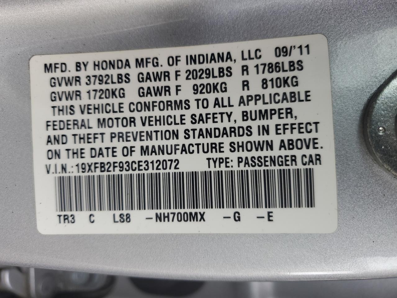 Цвет СеребряныйЦилиндры 4VIN 19XFB2F93CE312072Состояние Заводится и едет (проверено)Повреждение Задняя