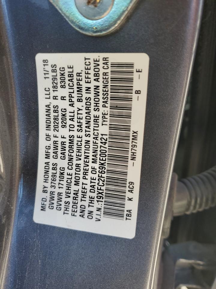 HONDA CIVIC 2.0 2019 г.в., (19XFC2F69KE007421) из США