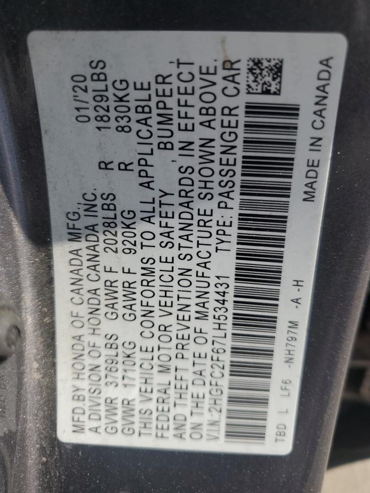 HONDA CIVIC 2.0 2020 г.в., (2HGFC2F67LH534431) из США