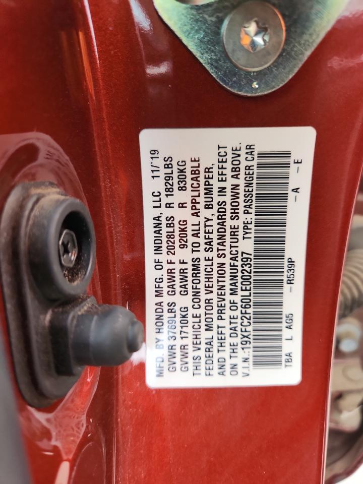 HONDA CIVIC 2.0 2020 г.в., (19XFC2F60LE002397) из США