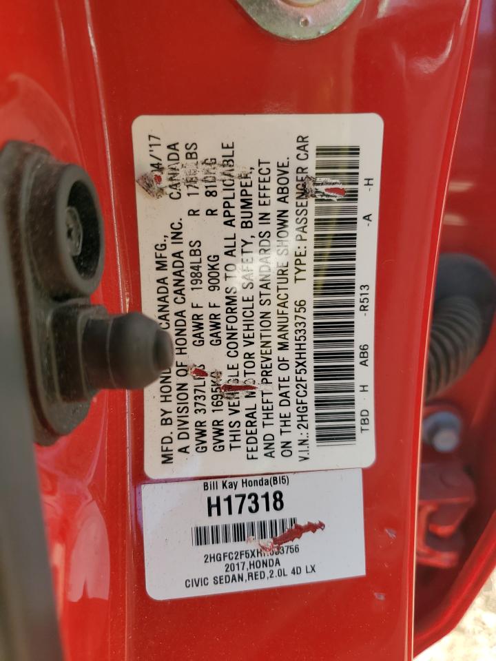 HONDA CIVIC 2.0 2017 г.в., (2HGFC2F5XHH533756) из США