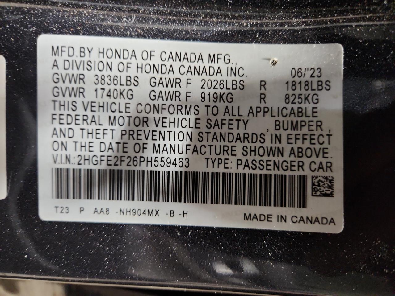 HONDA CIVIC 2.0 2023 г.в., (2HGFE2F26PH559463) из США