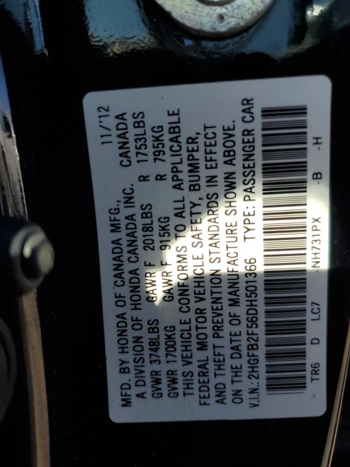 HONDA CIVIC 1.8 2013 г.в., (2HGFB2F56DH501366) из США