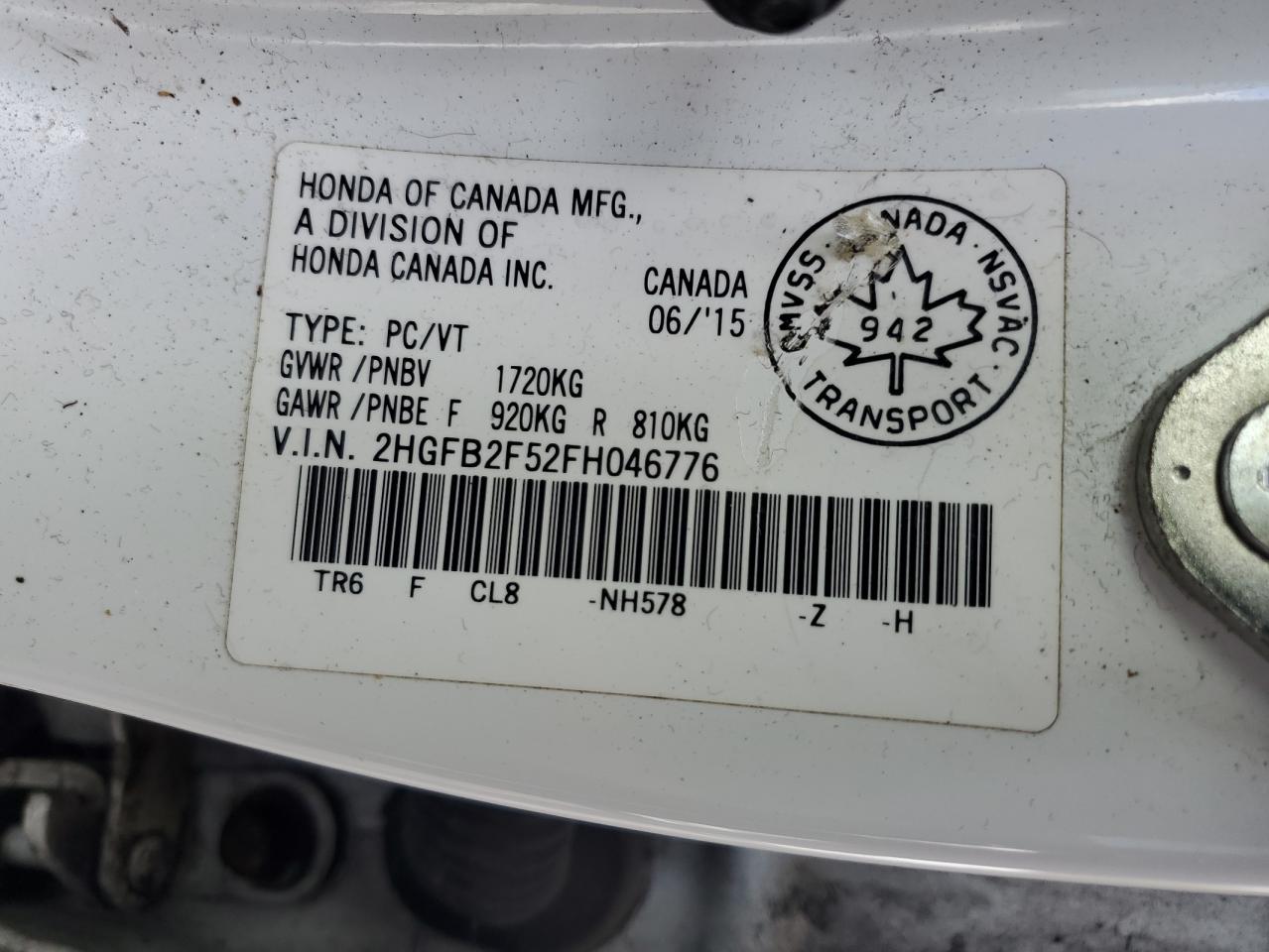Цвет БелыйЦилиндры 4VIN 2HGFB2F52FH046776Состояние Заводится и едет (проверено)Повреждение Передняя или задняя
