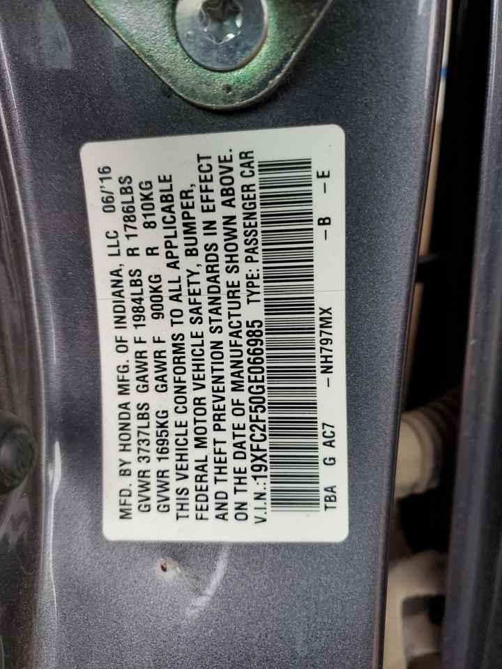 HONDA CIVIC 2.0 2016 г.в., (19XFC2F50GE066985) из США