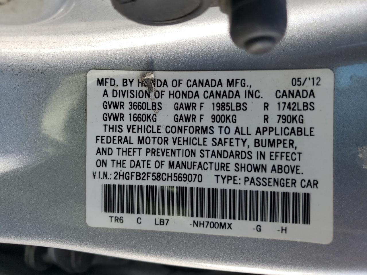 HONDA CIVIC 1.8 2012 г.в., (2HGFB2F58CH569070) из США