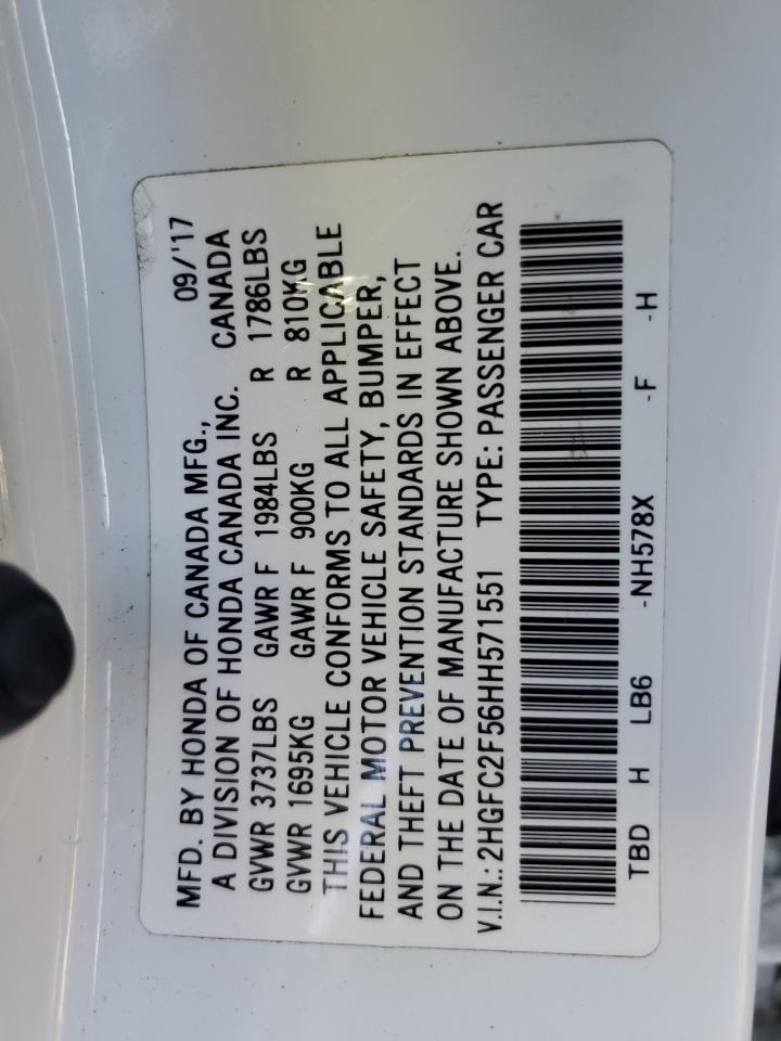 HONDA CIVIC 2.0 2017 г.в., (2HGFC2F56HH571551) из США
