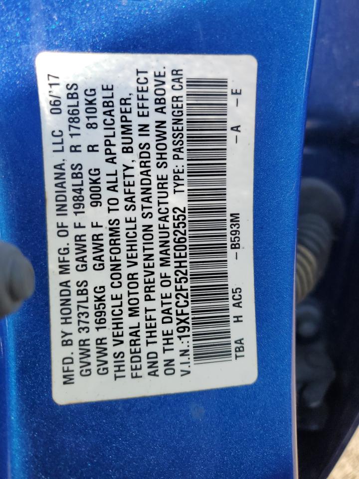 HONDA CIVIC 2.0 2017 г.в., (19XFC2F52HE062552) из США