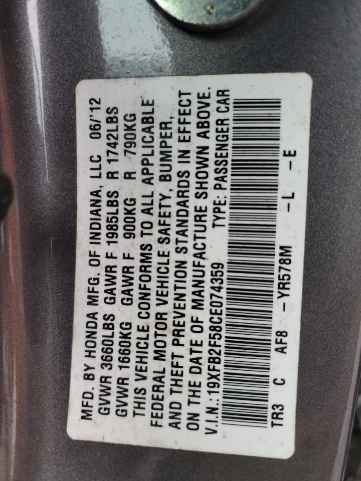HONDA CIVIC 1.8 2012 г.в., (19XFB2F58CE074359) из США