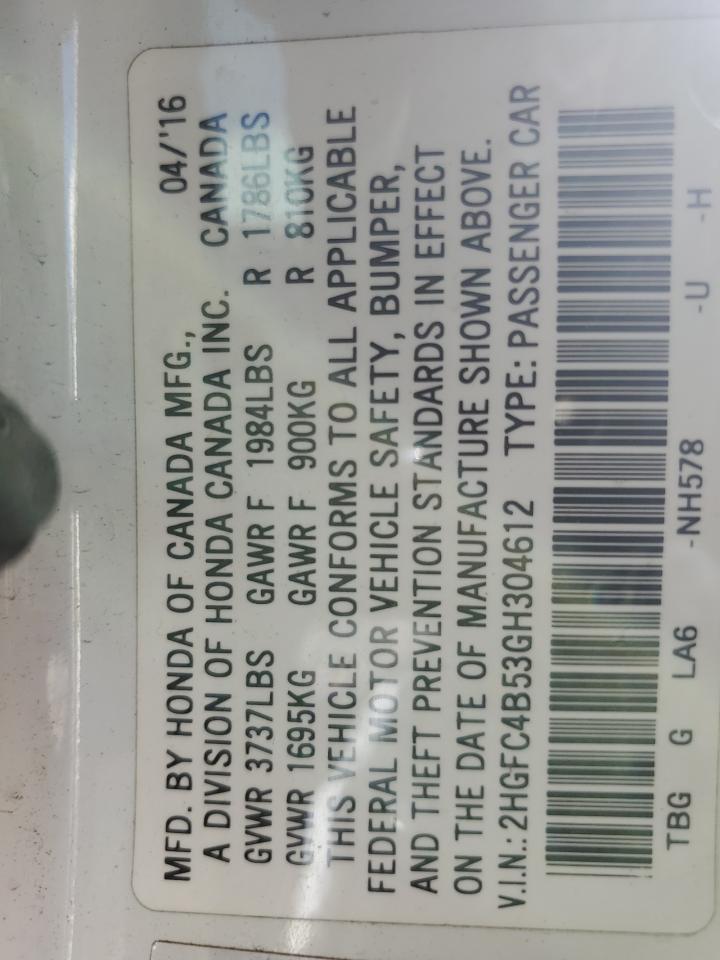HONDA CIVIC 2.0 2016 г.в., (2HGFC4B53GH304612) из США