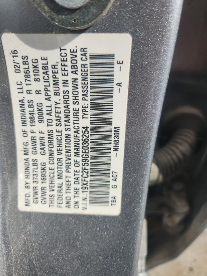 HONDA CIVIC 2.0 2016 г.в., (19XFC2F59GE036254) из США