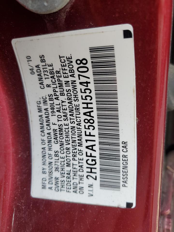 HONDA CIVIC 1.8 2010 г.в., (2HGFA1F58AH554708) из США