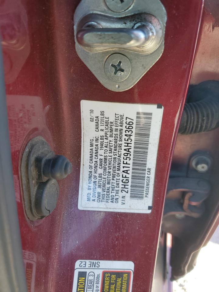 HONDA CIVIC 1.8 2010 г.в., (2HGFA1F59AH543667) из США