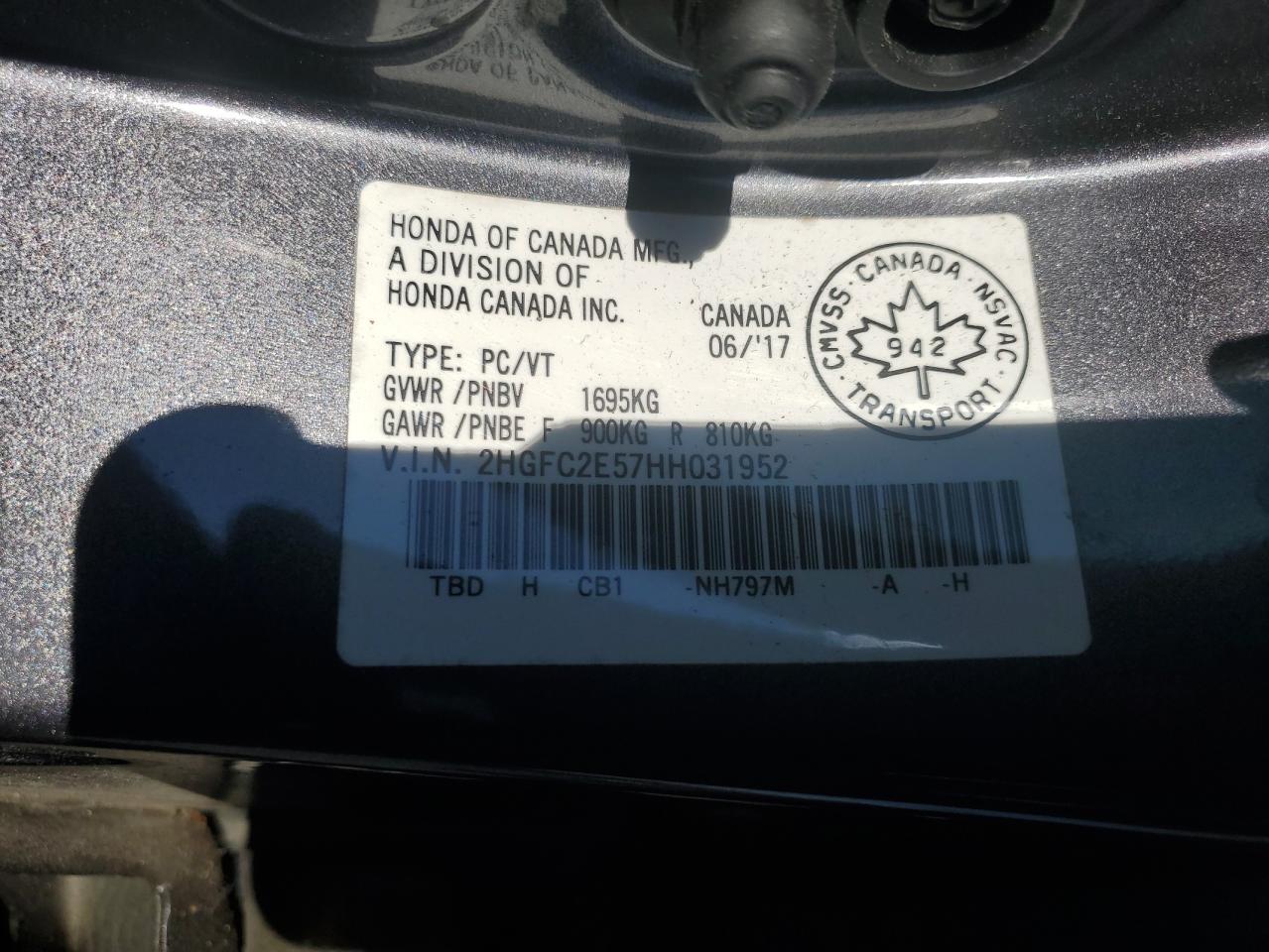 HONDA CIVIC 2.0 2017 г.в., (2HGFC2E57HH031952) из США