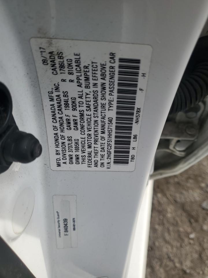HONDA CIVIC 2.0 2017 г.в., (2HGFC2F51HH571540) из США