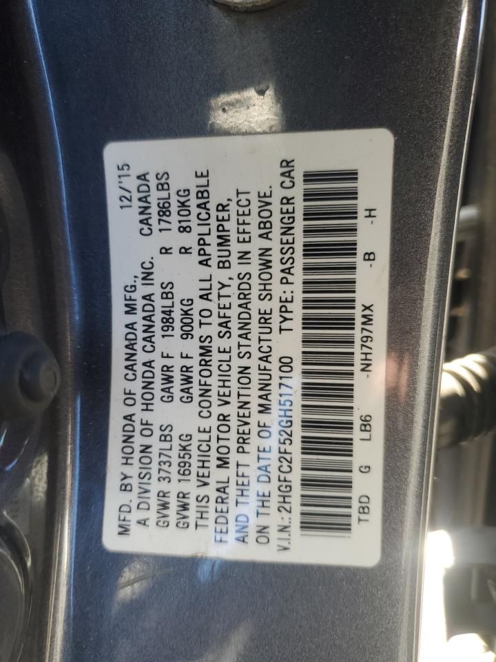 HONDA CIVIC 2.0 2016 г.в., (2HGFC2F52GH517100) из США