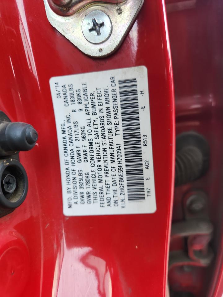 Цвет КрасныйЦилиндры 4VIN 2HGFB6E59EH700941Состояние Заводится и едет (проверено)Повреждение Передняя или задняяДата аукциона 2025-10-31