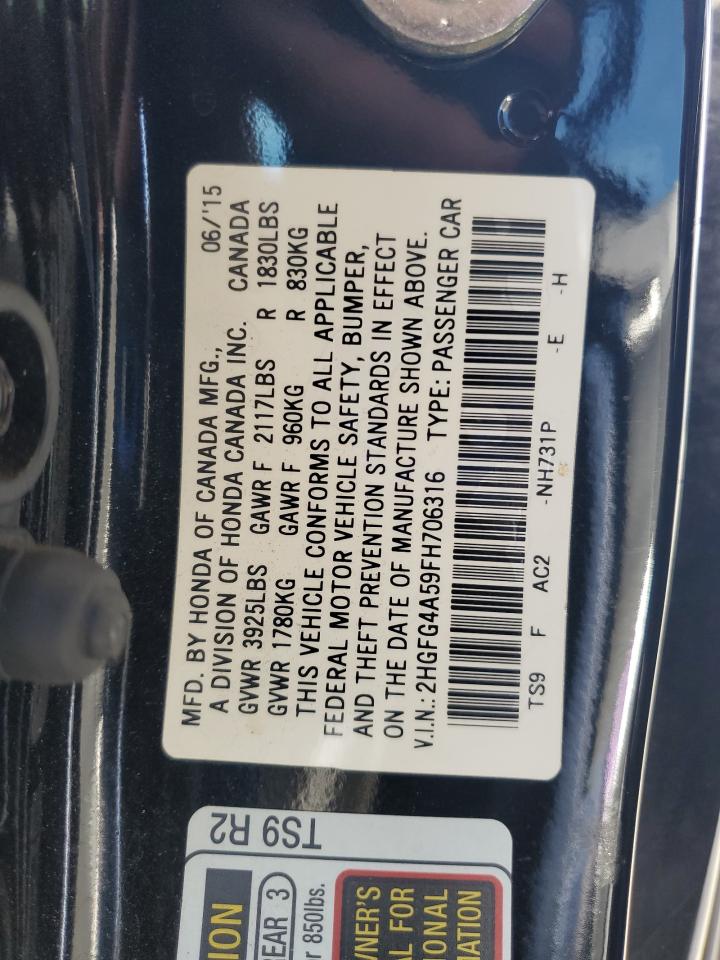 Цвет ЧерныйЦилиндры 4VIN 2HGFG4A59FH706316Состояние НеизвестноПовреждение Передняя или задняя