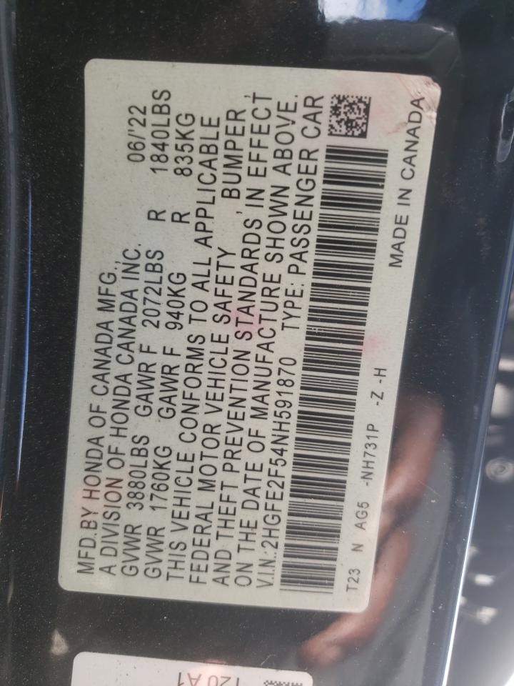 HONDA CIVIC 2.0 2022 г.в., (2HGFE2F54NH591870) из США
