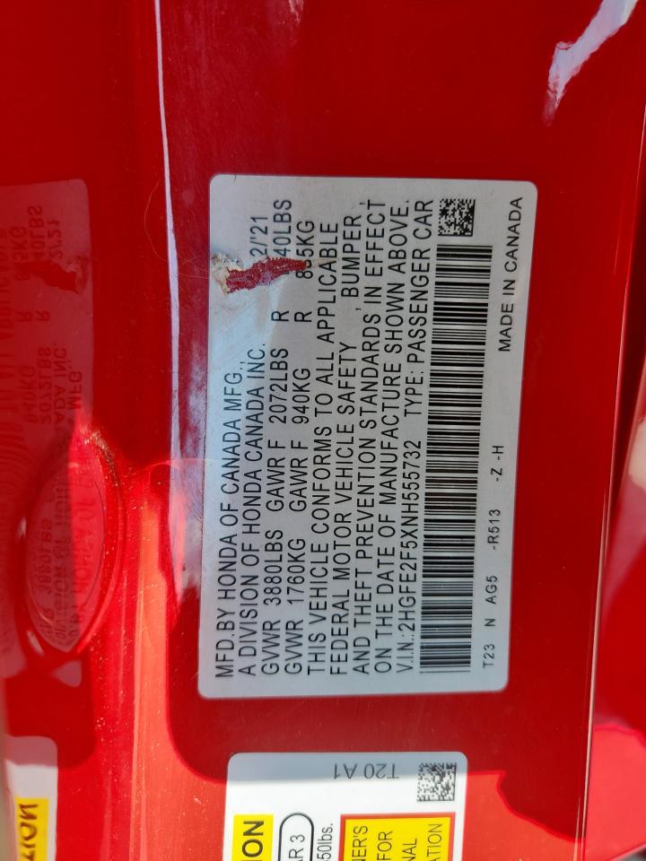 HONDA CIVIC 2.0 2022 г.в., (2HGFE2F5XNH555732) из США