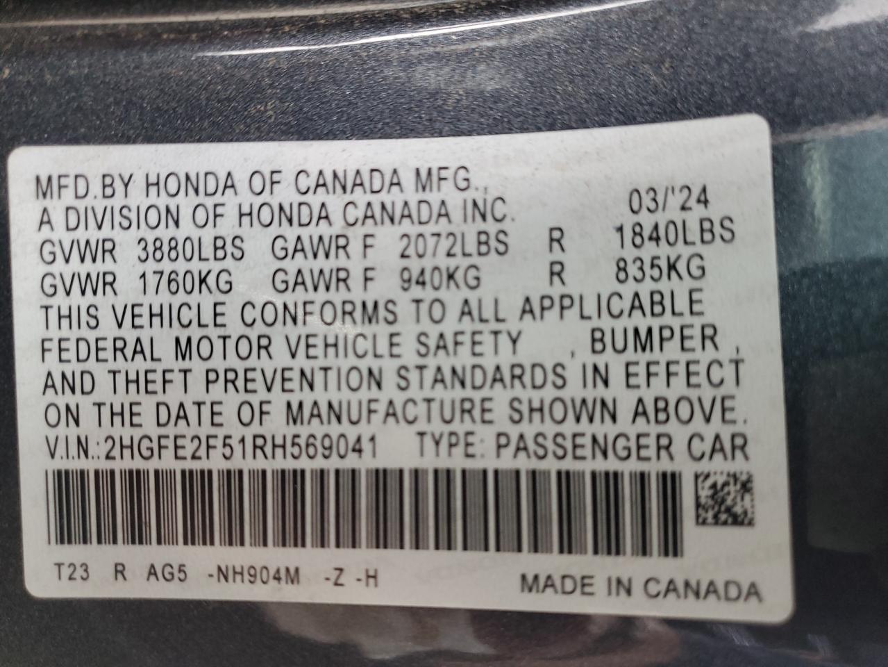 HONDA CIVIC 2.0 2024 г.в., (2HGFE2F51RH569041) из США