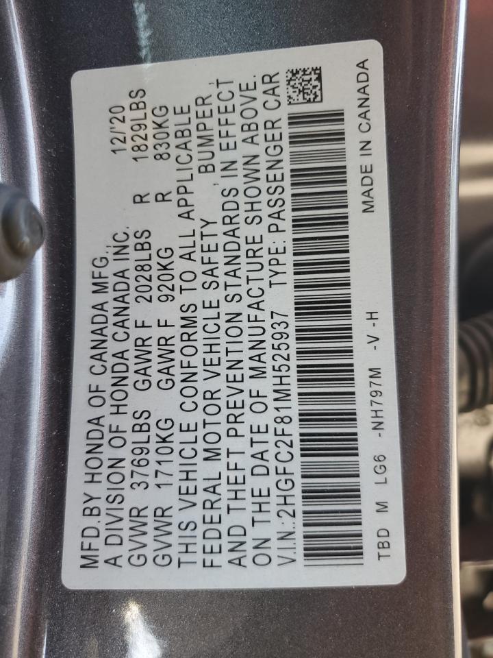HONDA CIVIC 2.0 2021 г.в., (2HGFC2F81MH525937) из США