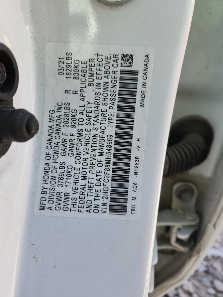 HONDA CIVIC 2.0 2021 г.в., (2HGFC2F88MH548969) из США