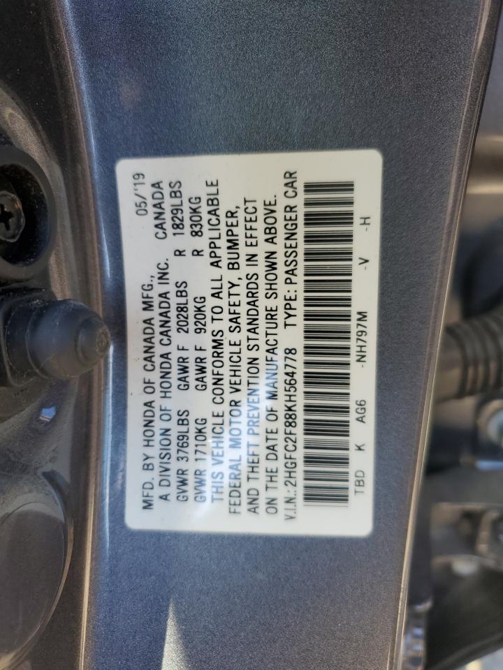 HONDA CIVIC 2.0 2019 г.в., (2HGFC2F88KH564778) из США
