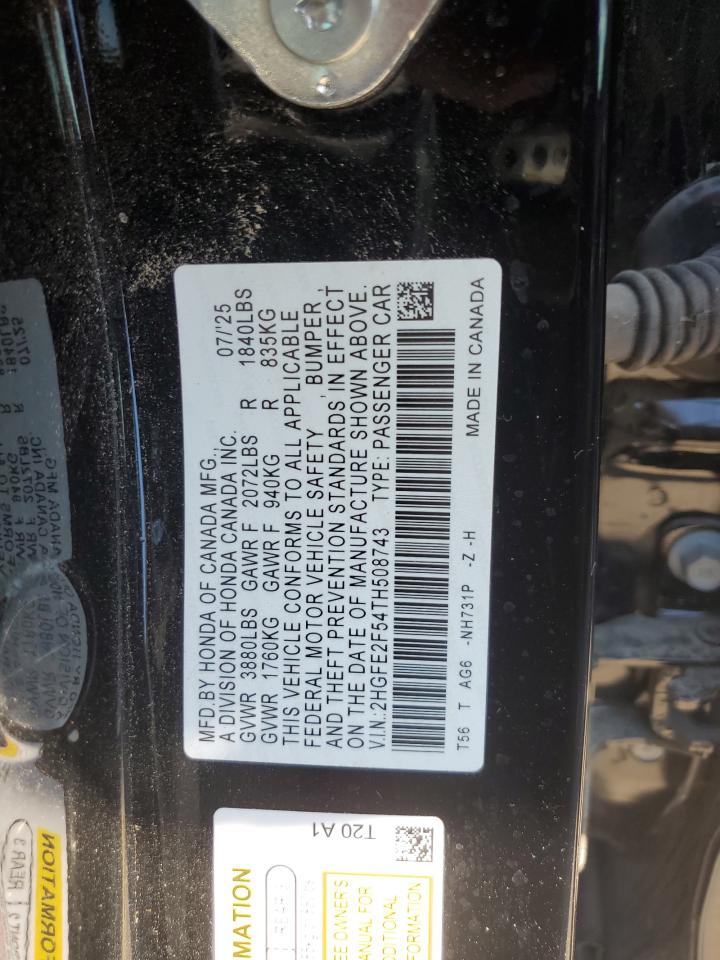 HONDA CIVIC 2.0 2026 г.в., (2HGFE2F54TH508743) из США
