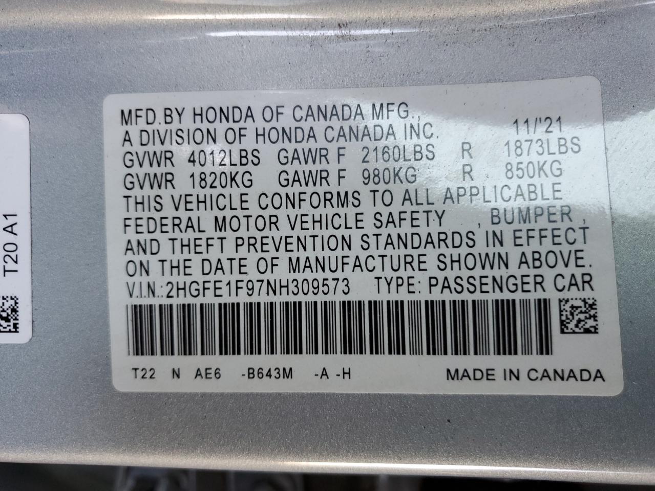 HONDA CIVIC 1.5 2022 г.в., (2HGFE1F97NH309573) из США