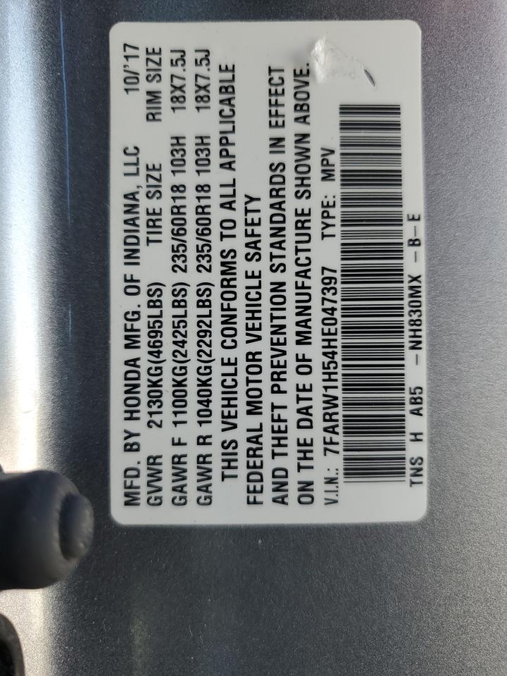 HONDA CR-V 1.5 2017 г.в., (7FARW1H54HE047397) из США