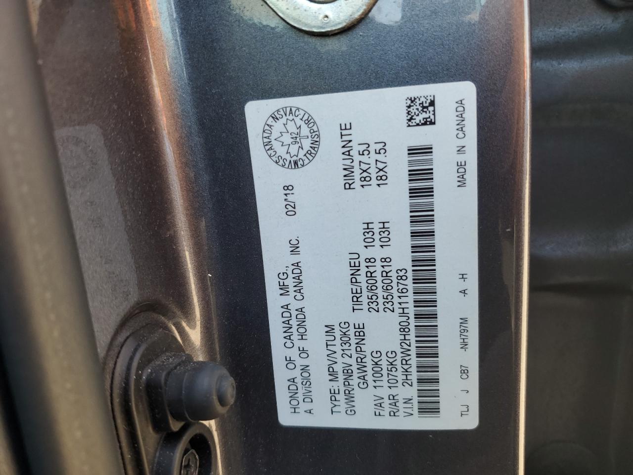 Цвет СерыйЦилиндры 4Привод Полный приводVIN 2HKRW2H80JH116783Состояние Заводится и едет (проверено)Повреждение Передняя или задняя