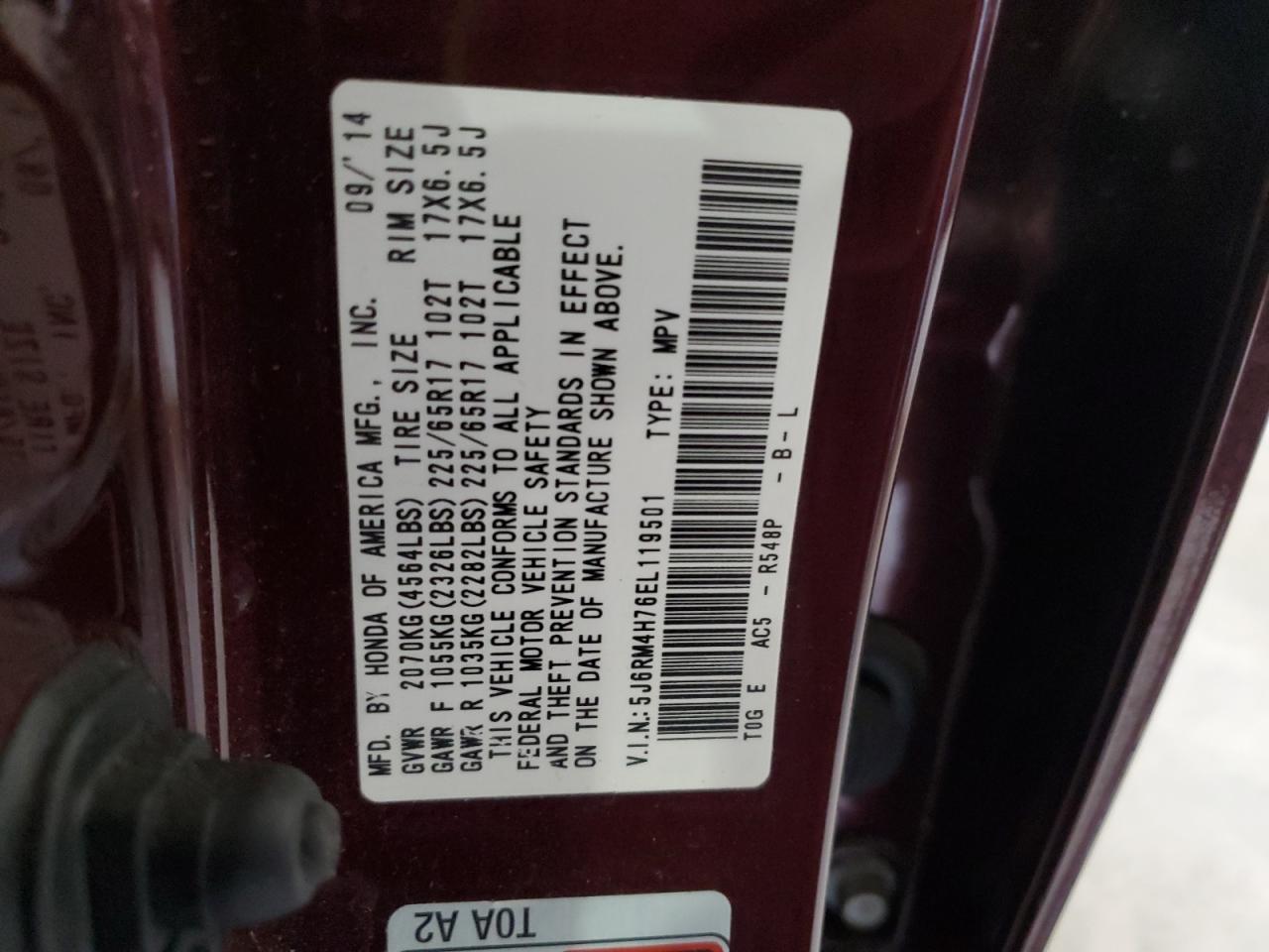 HONDA CR-V 2.4 2014 г.в., Полный привод (5J6RM4H76EL119501) из США