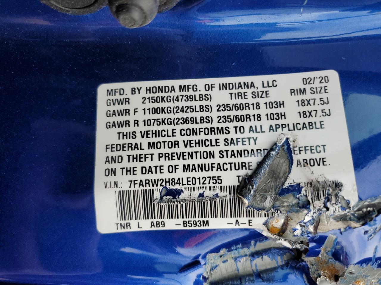 Цвет СинийЦилиндры 4Привод Полный приводVIN 7FARW2H84LE012755Состояние НеизвестноПовреждение По всему автоДата аукциона 2025-11-03