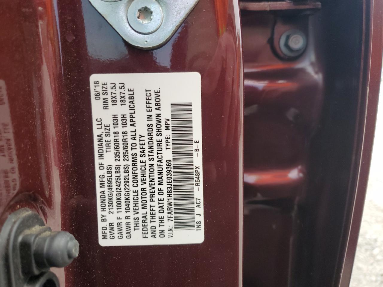HONDA CR-V 1.5 2018 г.в., (7FARW1H83JE039369) из США