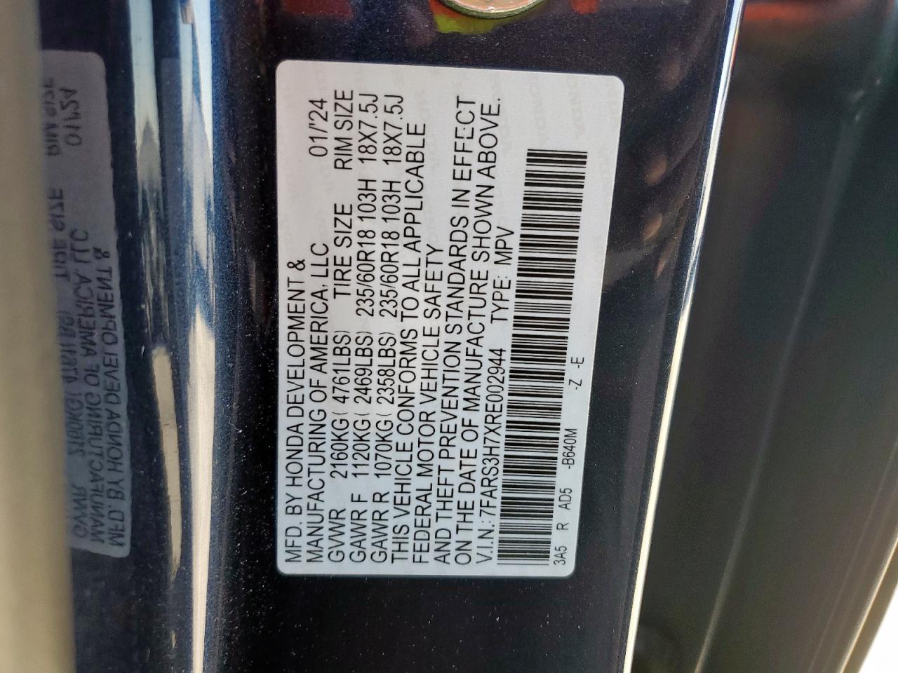 HONDA CR-V 1.5 2024 г.в., (7FARS3H7XRE002944) из США