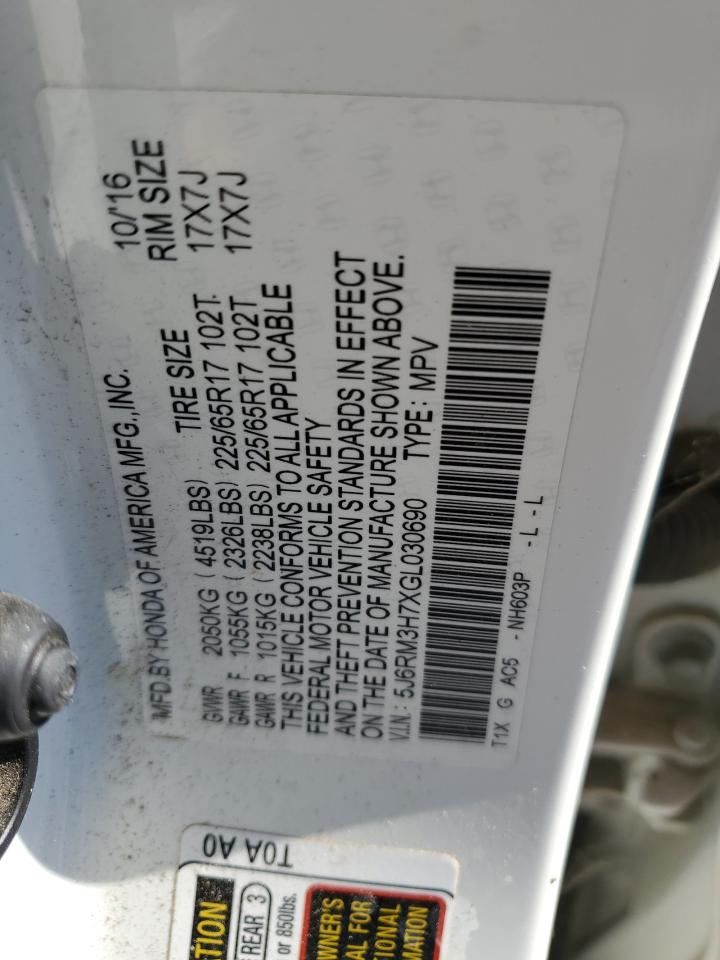 HONDA CR-V 2.4 2016 г.в., (5J6RM3H7XGL030690) из США