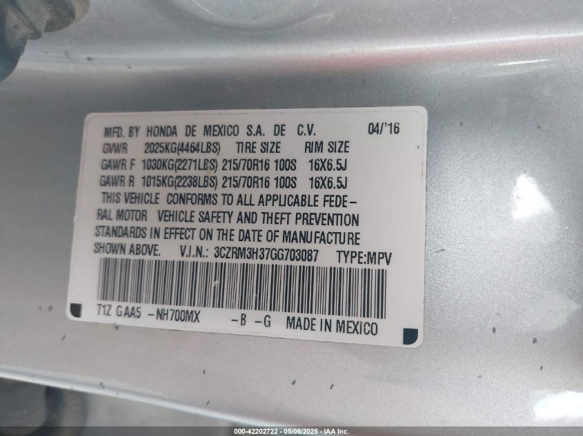 HONDA CR-V 2.4 2016 г.в., Передний привод (3CZRM3H37GG703087) из США