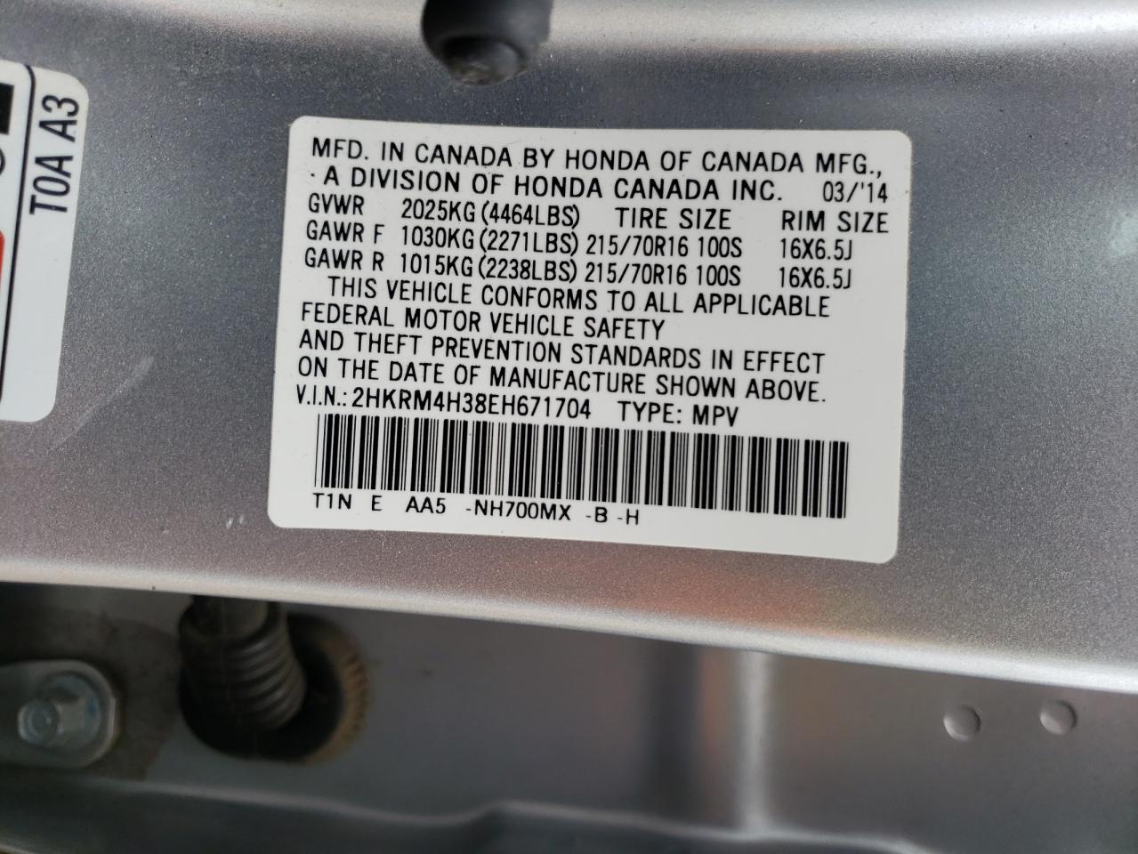 HONDA CR-V 2.4 2014 г.в., Полный привод (2HKRM4H38EH671704) из США