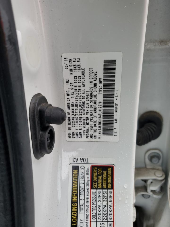 Цвет БелыйЦилиндры 4VIN 5J6RM3H34FL012570Состояние Заводится и едет (проверено)Повреждение Задняя