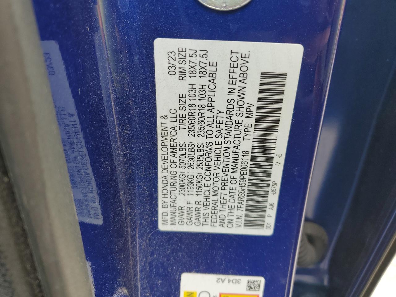 HONDA CR-V 2.0 2023 г.в., (7FARS5H59PE006118) из США