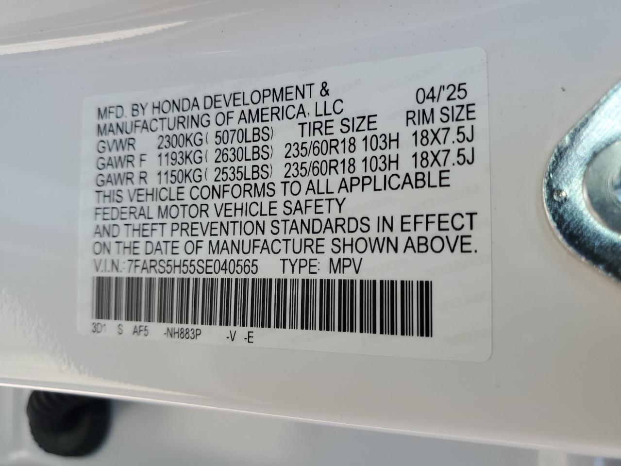 HONDA CR-V 2.0 2025 г.в., (7FARS5H55SE040565) из США