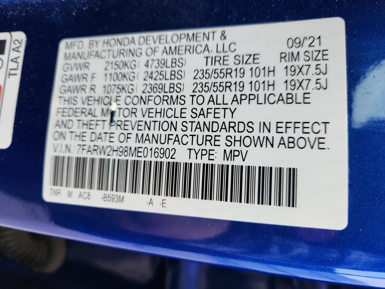 HONDA CR-V 1.5 2021 г.в., Полный привод (7FARW2H98ME016902) из США