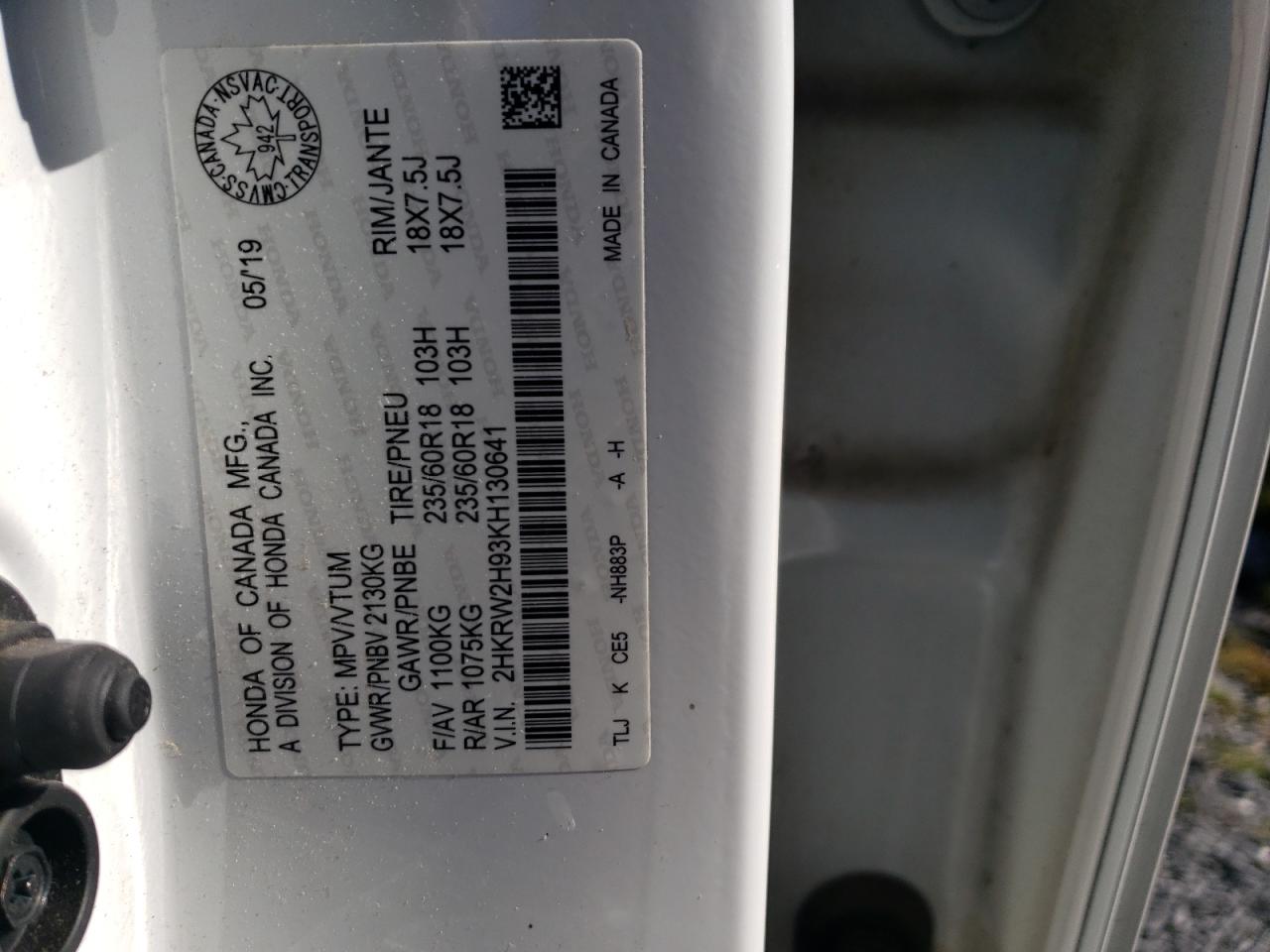 HONDA CR-V 1.5 2019 г.в., Полный привод (2HKRW2H93KH130641) из США