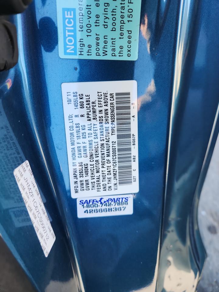 HONDA CR-Z 1.5 2012 г.в., (JHMZF1C67CS000712) из США